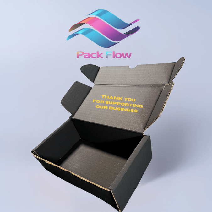 بوكس أسود مات من الداخل والخارج + طباعة لوغو ورسالة شكر بالذهبي