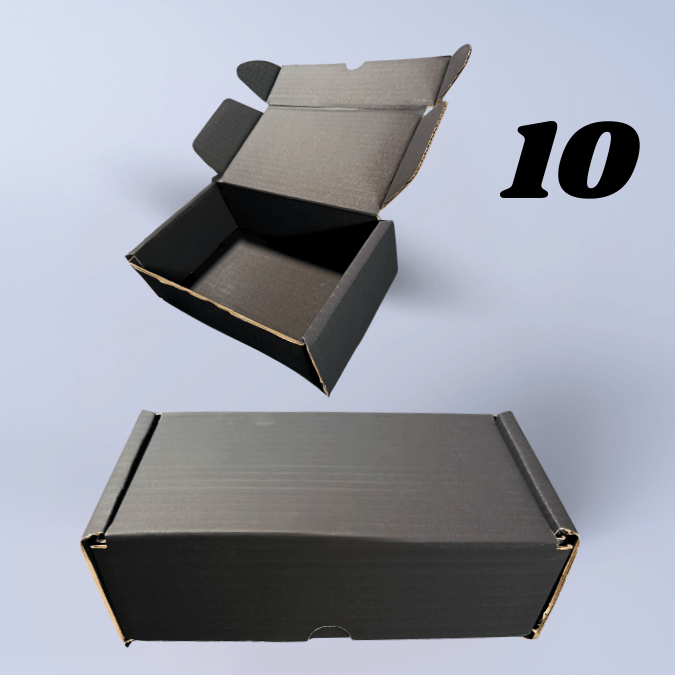 - 10 علب سوداء مات (داخل/خارج): لمسة فاخرة وملمس ناعم يناسب التصوير وفتح العلبة.
