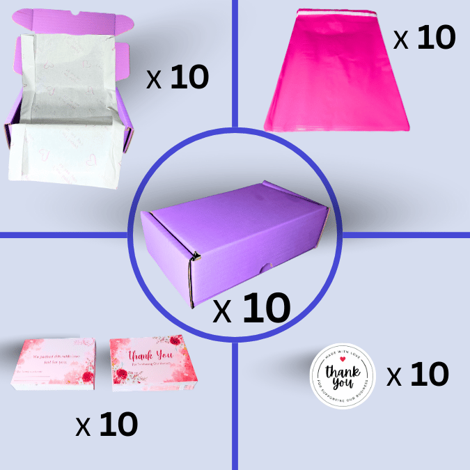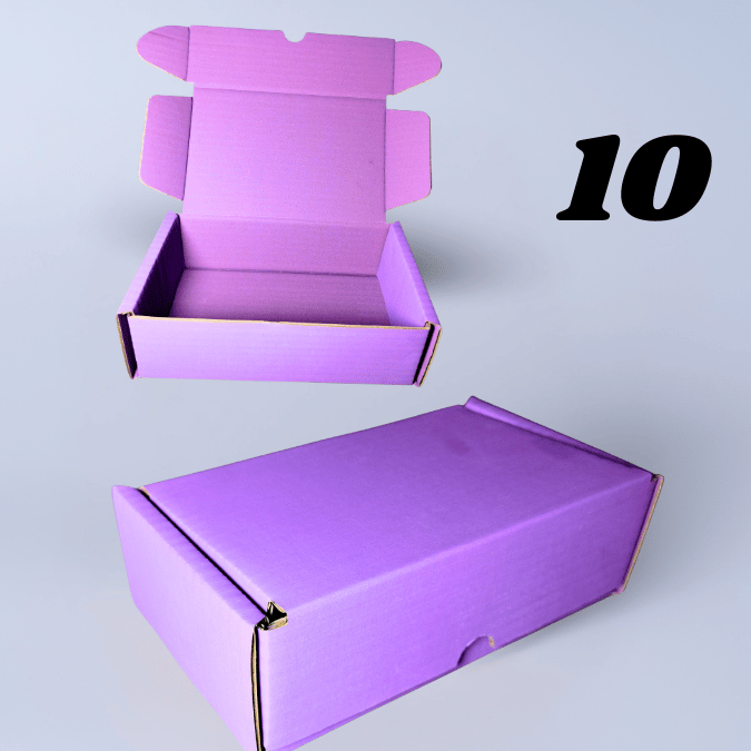 - 10 علب بنفسجية مات (داخل/خارج): لمسة فاخرة وملمس ناعم يناسب التصوير وفتح العلبة.